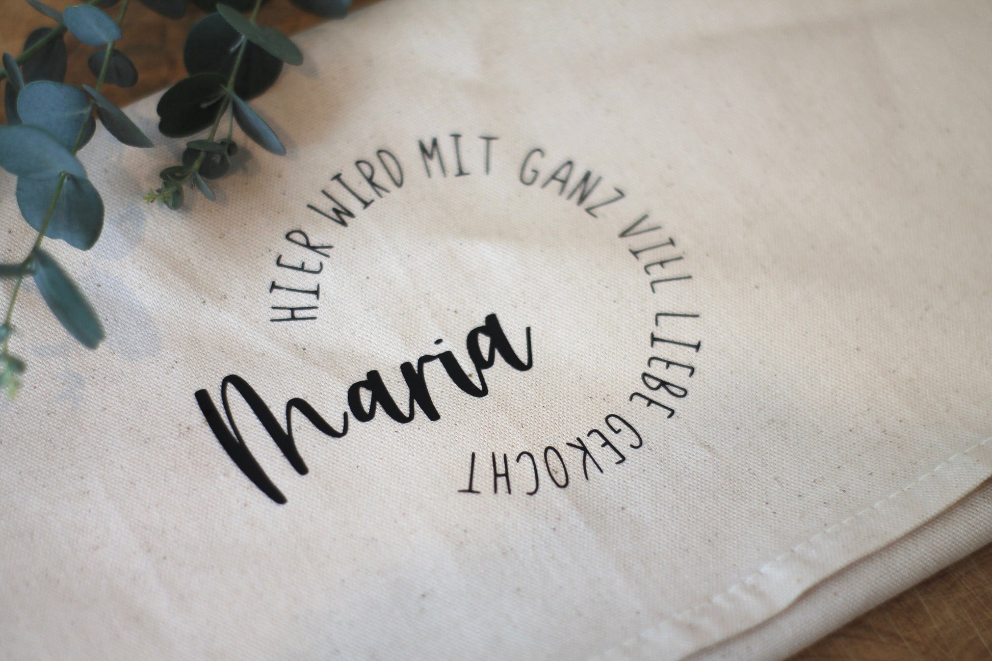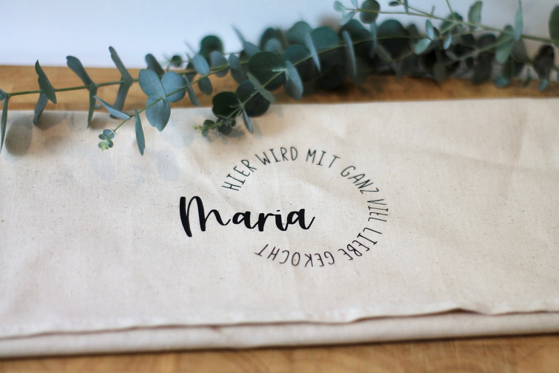 „Hier wird mit ganz viel Liebe gekocht“ – Personalisiertes Geschirrtuch für den Koch des Hauses