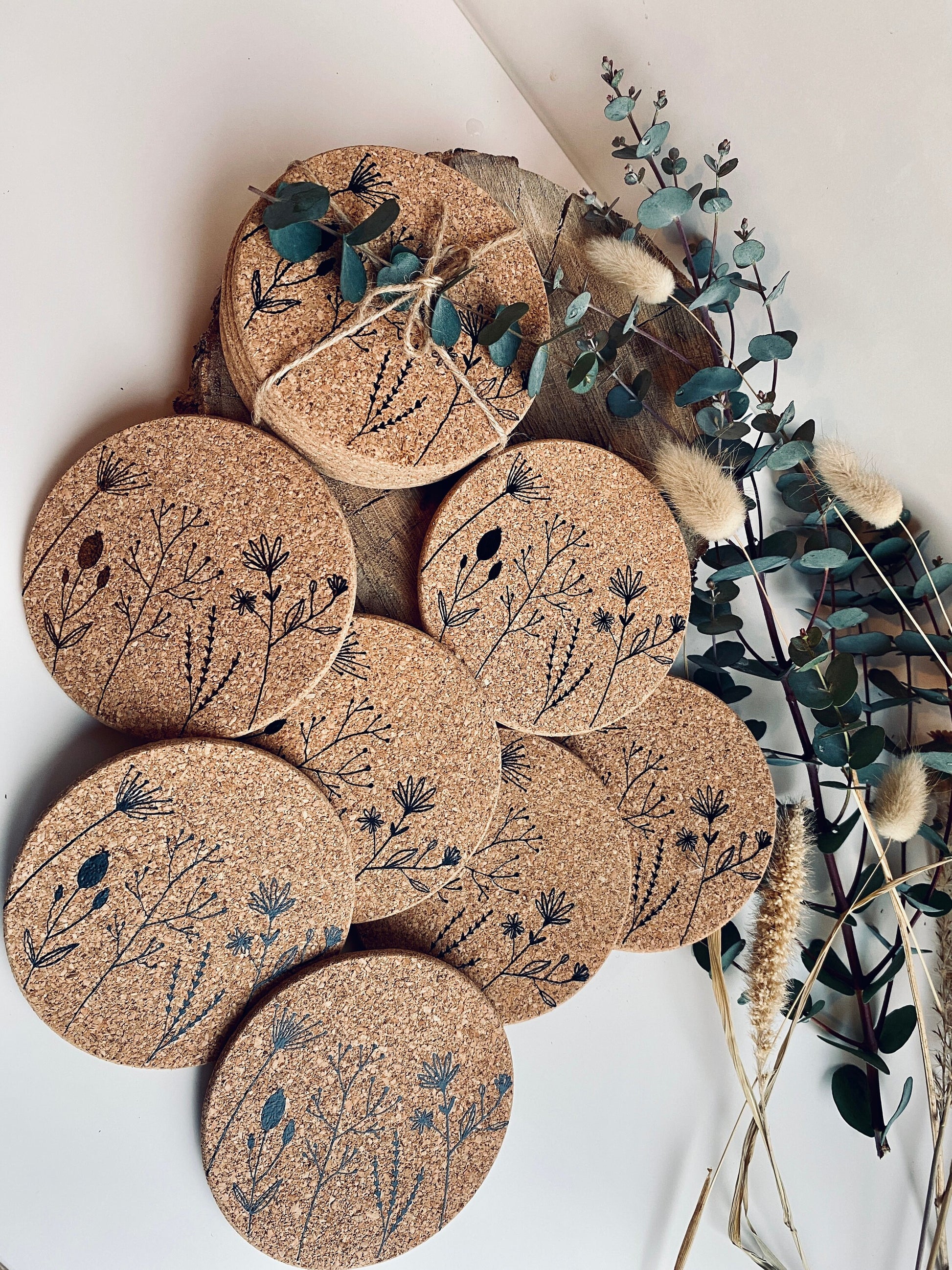 Glasuntersetzer Kork mit Wild-Blumen, Boho